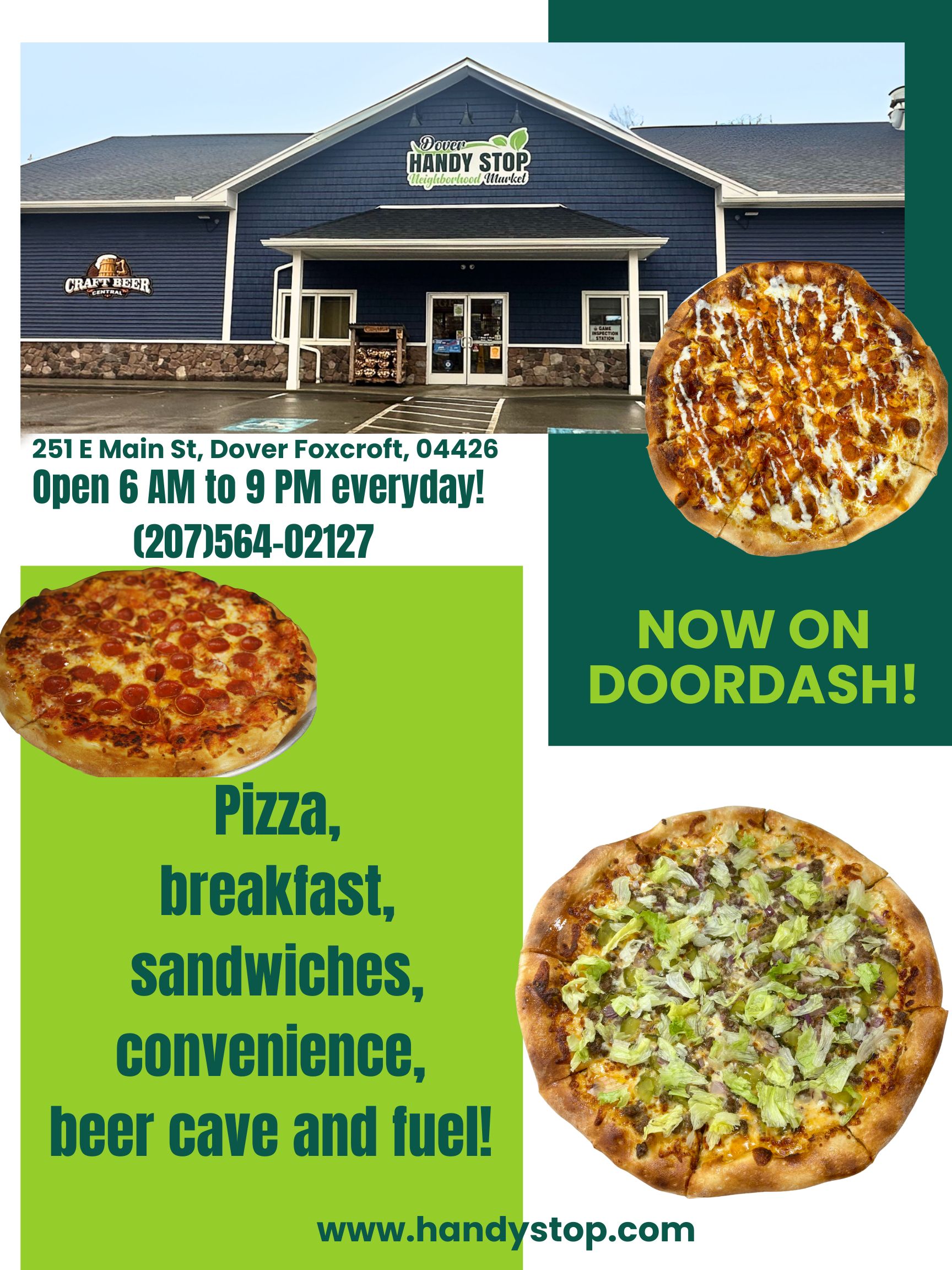 Handy Stop offers breakfast, lunch and dinner options from fresh sandwiches and salads to hot pizza and delicious chicken!